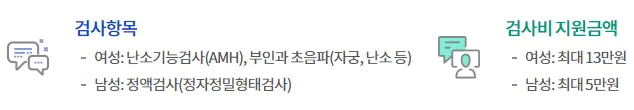 임신을 준비하고 있다면 가임력 검사비 지원 신청을 하여 지원금을 지원받아 준비하시기 바랍니다. 소득 관계없이 사실혼 예비부부를 포함한 임신 준비 부부들에게 지원합니다. 산모와 아이의 건강을 위해서 꼭 아래 링크를 통해 무료 검사를 받아 보시기 바랍니다.