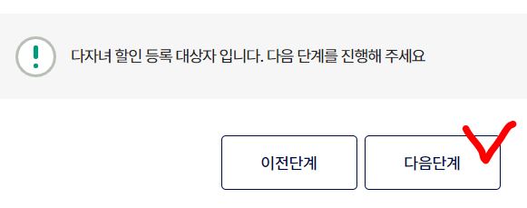 김포공항 다자녀 할인 등록 대상자라면 아래와 같은 메세지가 나오며, 다음 단계를 클릭합니다.