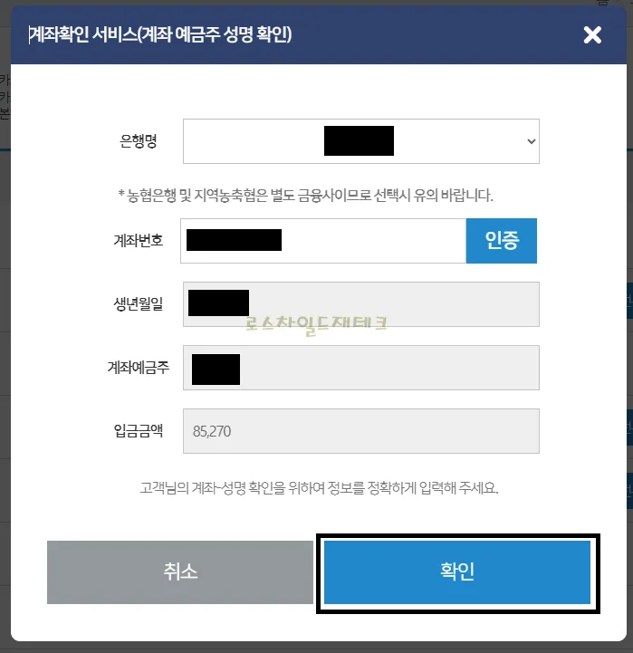 8. 계좌 정보를 넣고 확인을 누르면 포인트가 바로 통장으로 들어옵니다.