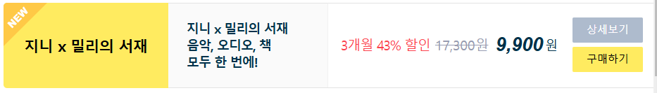 책보는 것을 좋아하신 다면 지니 밀리의 서재 이용권도 아주 좋은 선택이 될 수 있습니다.