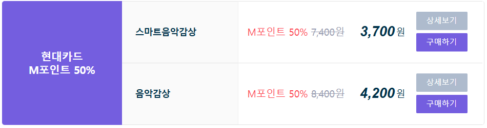 | 음악감상-3개월 특가 | 모든 기기 | 5500원 | 구매하기 |